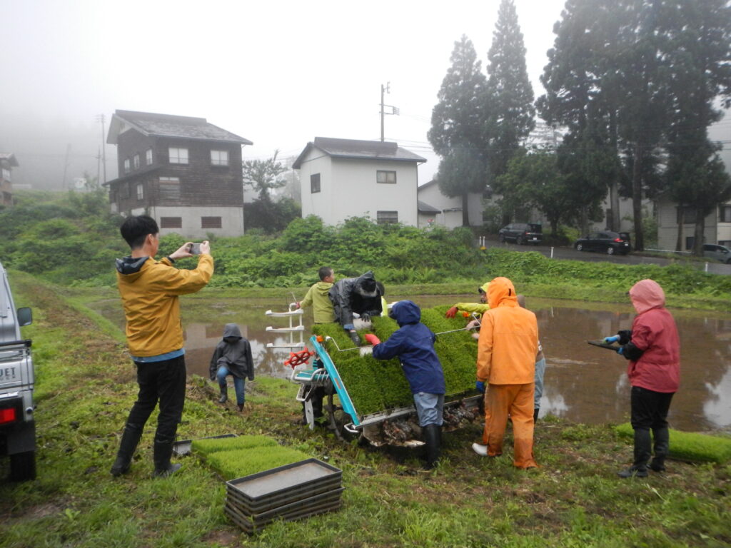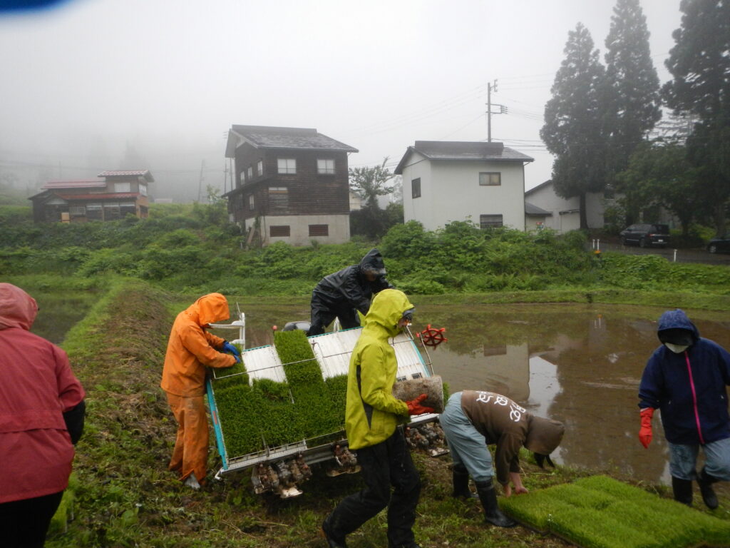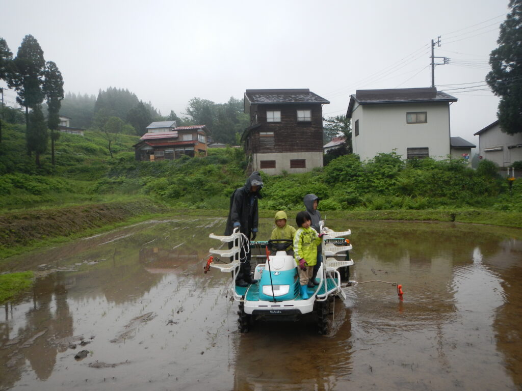 まきにぃる田んぼ2 年目の田植えです!当日は、小雨の降る中でしたが、大人〇人子供