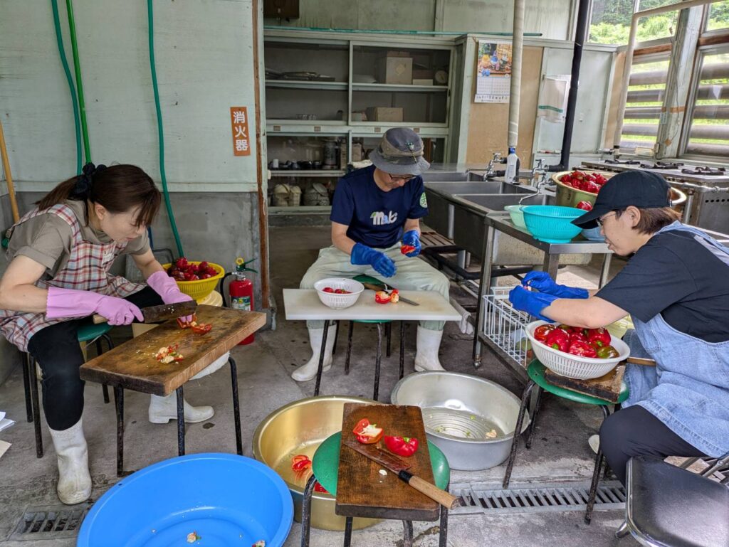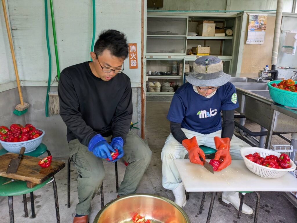 集まるメンバーはその都度違うのですが、コショウを切りながら、情報交換をしたり世間