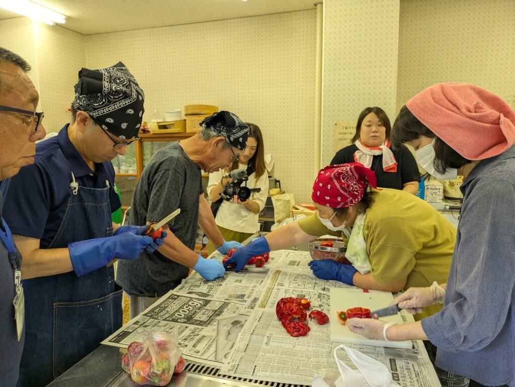 この日は、牧区でぴりっ子用のコショウを栽培している生産者が集まり、塩蔵の勉強会が